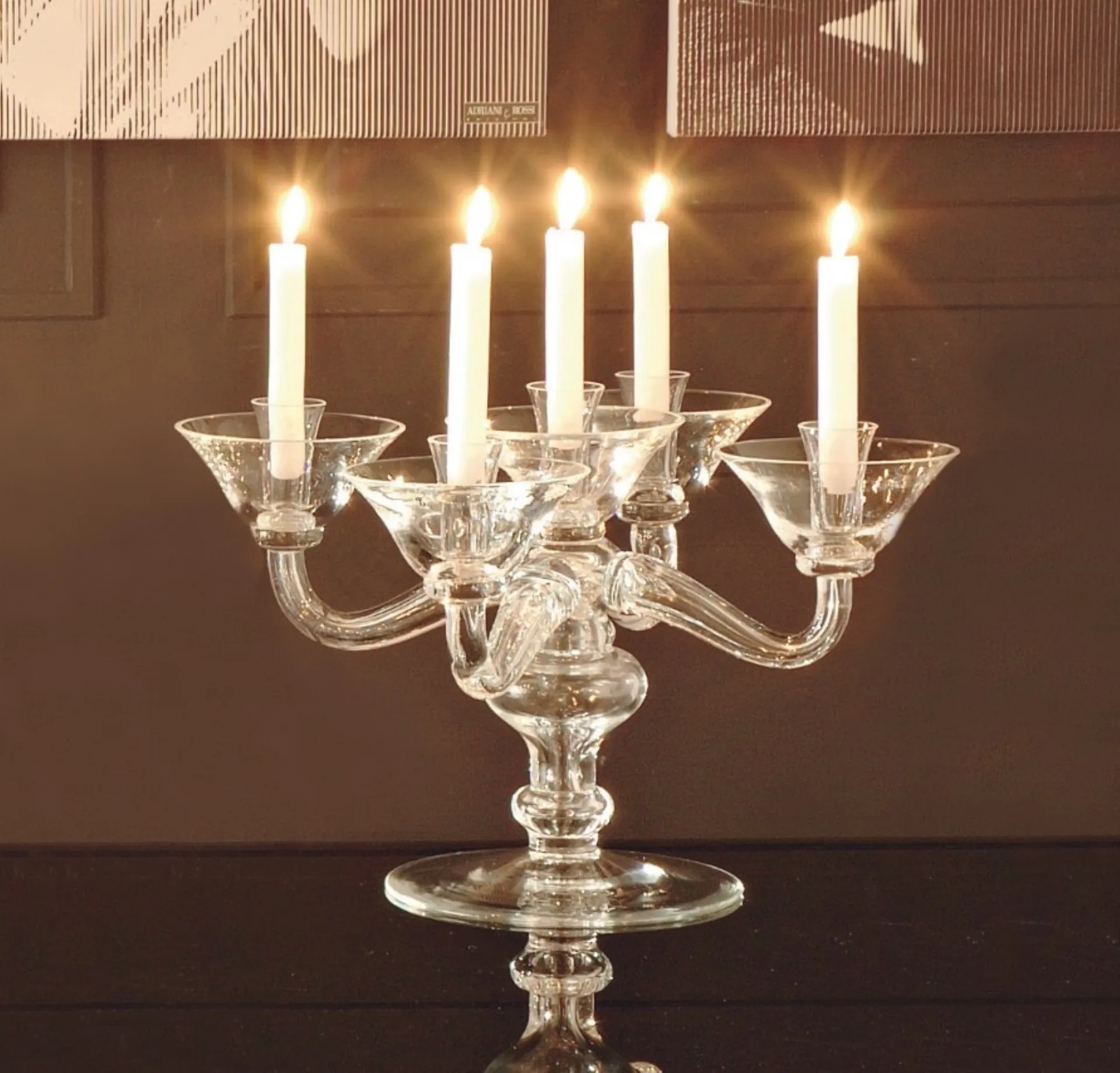 Le composizioni arredative di alto valore estetico del brand Adriani e Rossi valorizzano l'habitat con i loro colori e gusto, ricreando particolari atmosfere arredative. Nel nostro punto vendita potrai visionare in prima persona l'eccellenza dei modelli di candele e portacandele classici in vetro della marca, proprio come questa soluzione in foto. Complementi e candele e portacandele completano l'arredo di casa, riempiendo lo spazio in maniera utile e rendendolo assai funzionale e bello da vedere. Molto versatili e multifunzionali, i Complementi classici in vetro svolgono funzioni differenti: ultimano le doti pratiche e il valore estetico del locale.