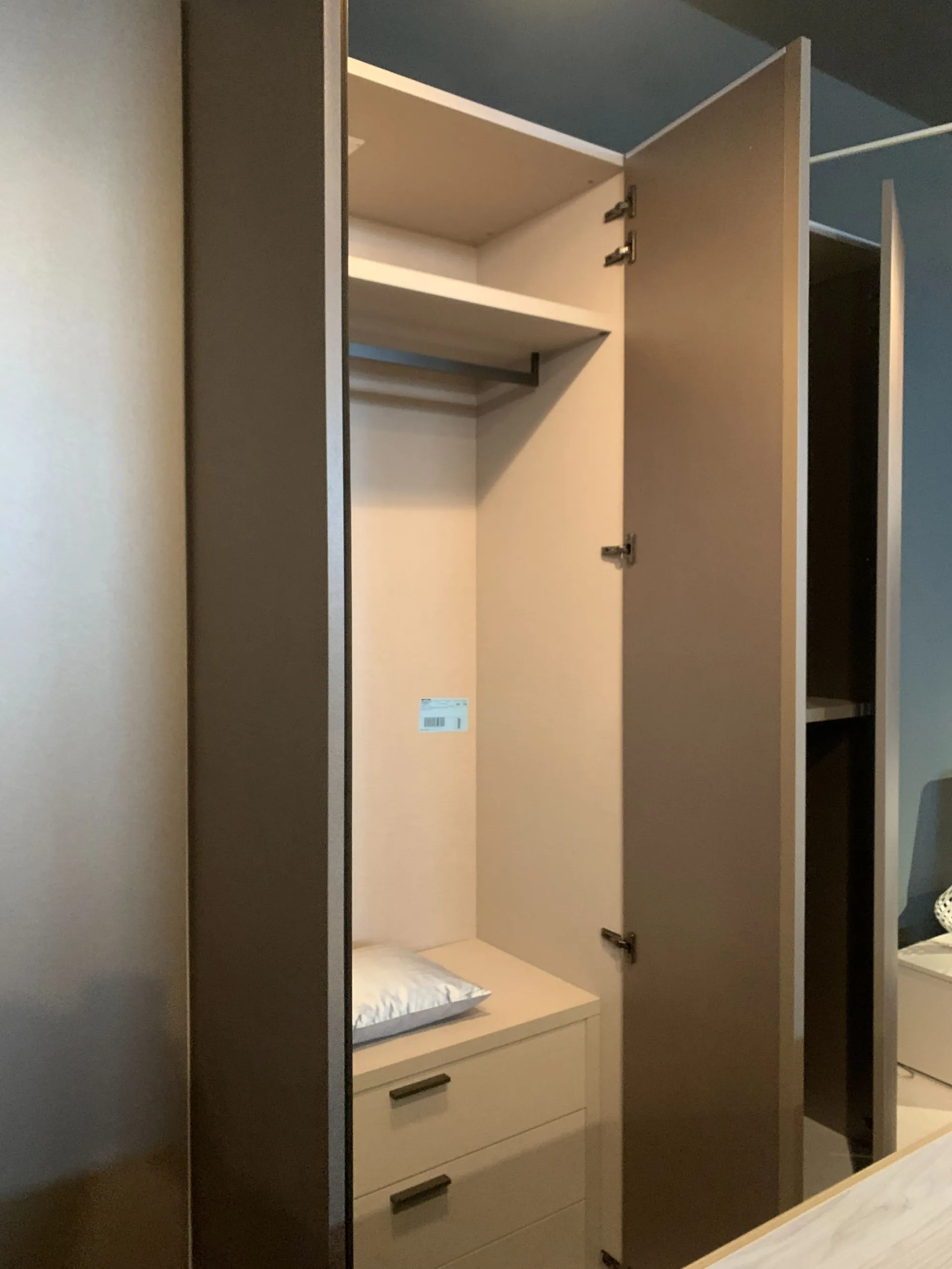 FINITURA: Ante Melaminico Dekor Tundra, maniglia in alluminio laccato in tinta, Interni melaminico Cotone. Cerniere ammortizzate