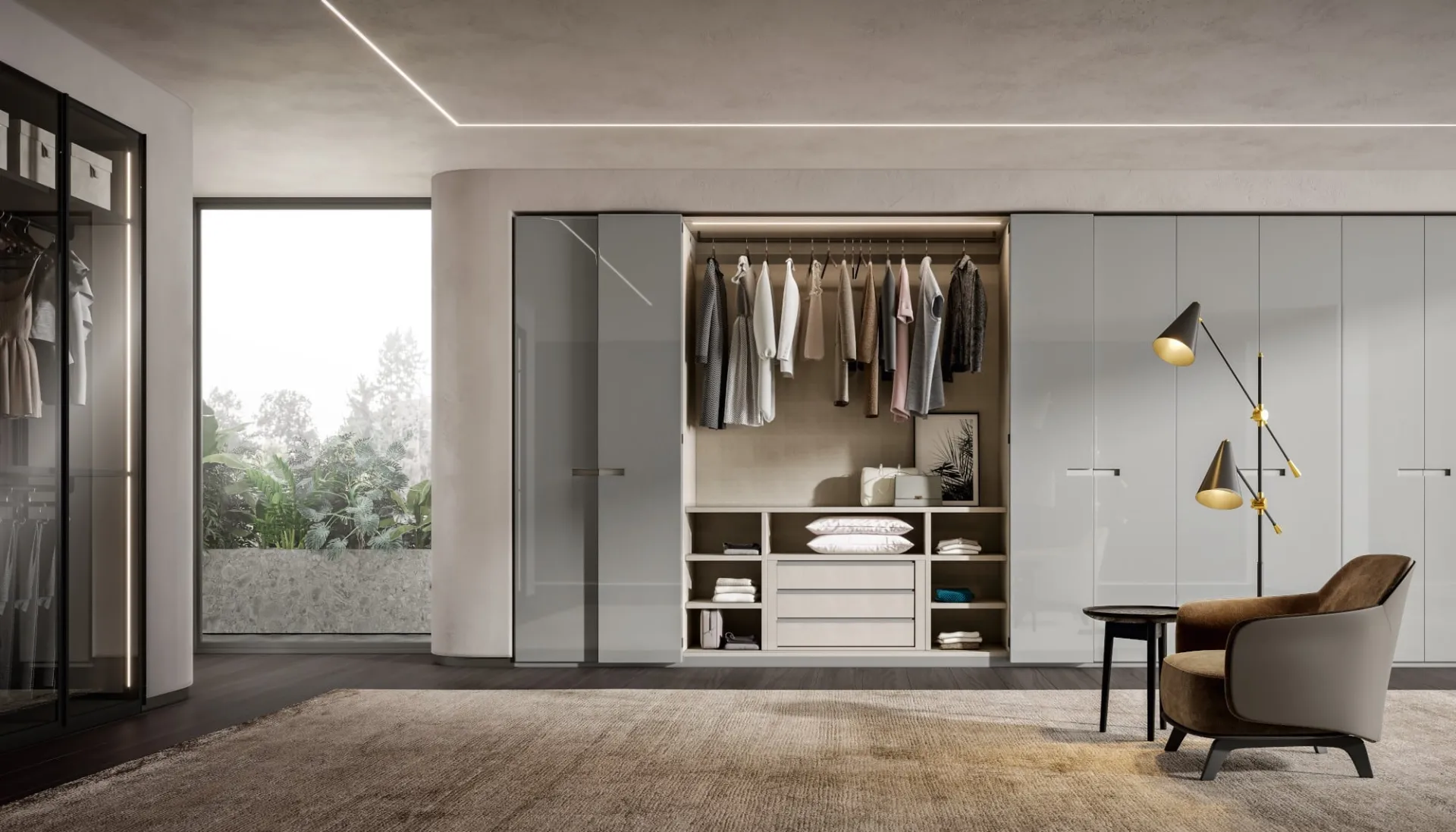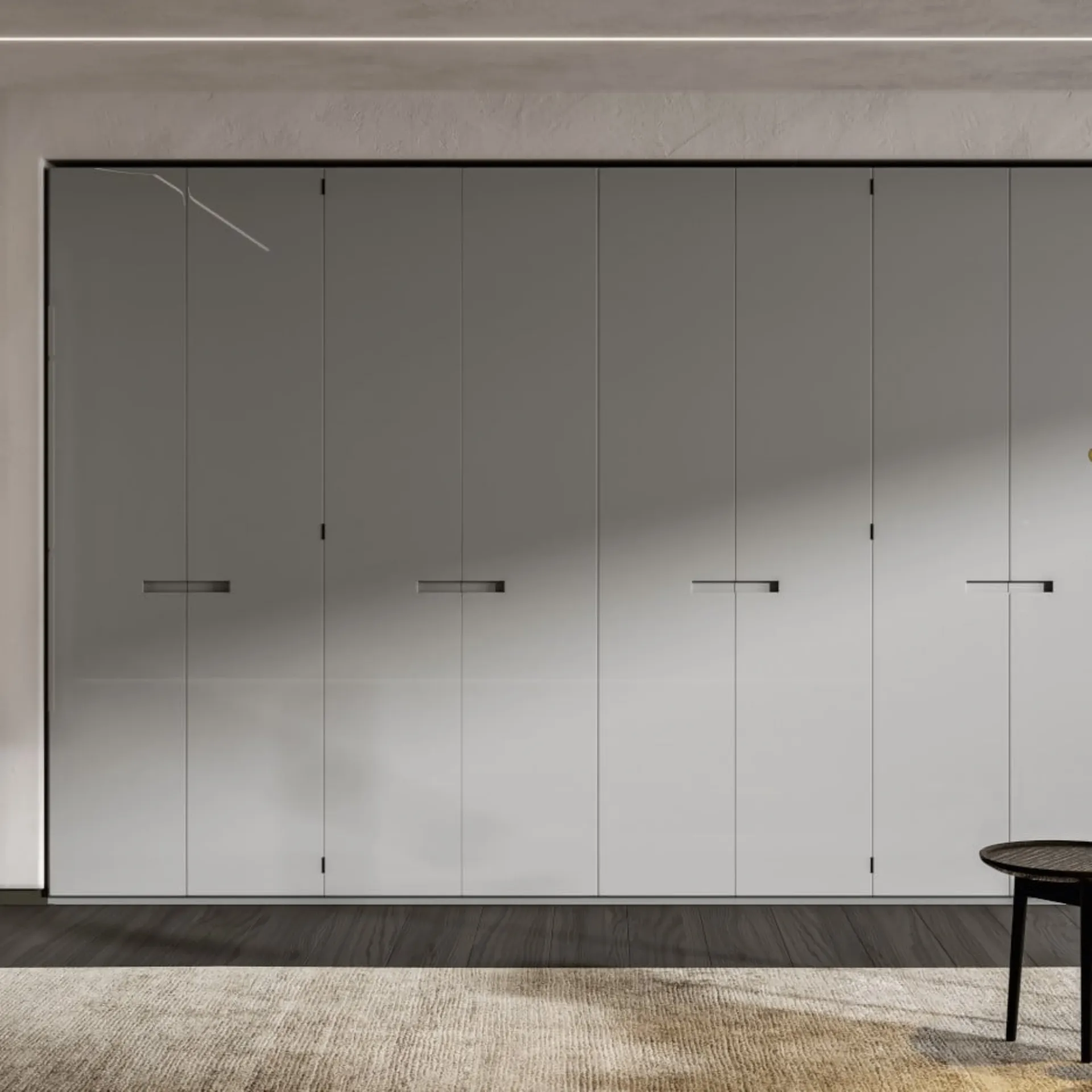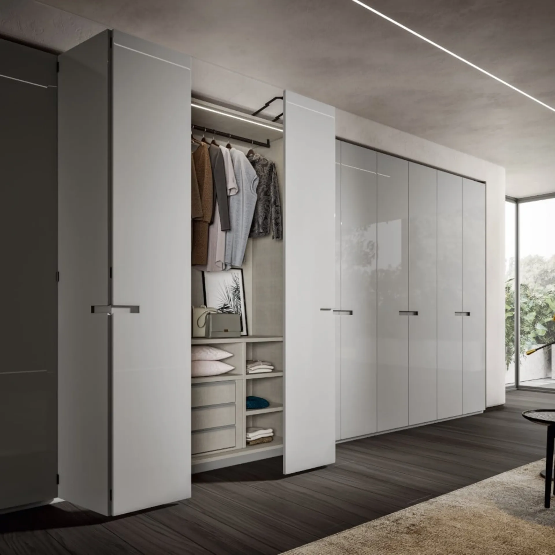 Gli Armadi a muro con ante a soffietto sono elementi irrinunciabili nella zona notte, per renderla arredata al meglio, funzionale e completa di tutto. Per allestire ottimamente una stanza pratica e sofisticata, scegli le più originali soluzioni dei migliori brand, letti, armadi e comodini di grande design. Armadio con ante a pacchetto Sincro in laccato Cenere di Veneran: compila il form per ricevere info di ogni tipo e consigli per allestire la camera che hai sempre desiderato.