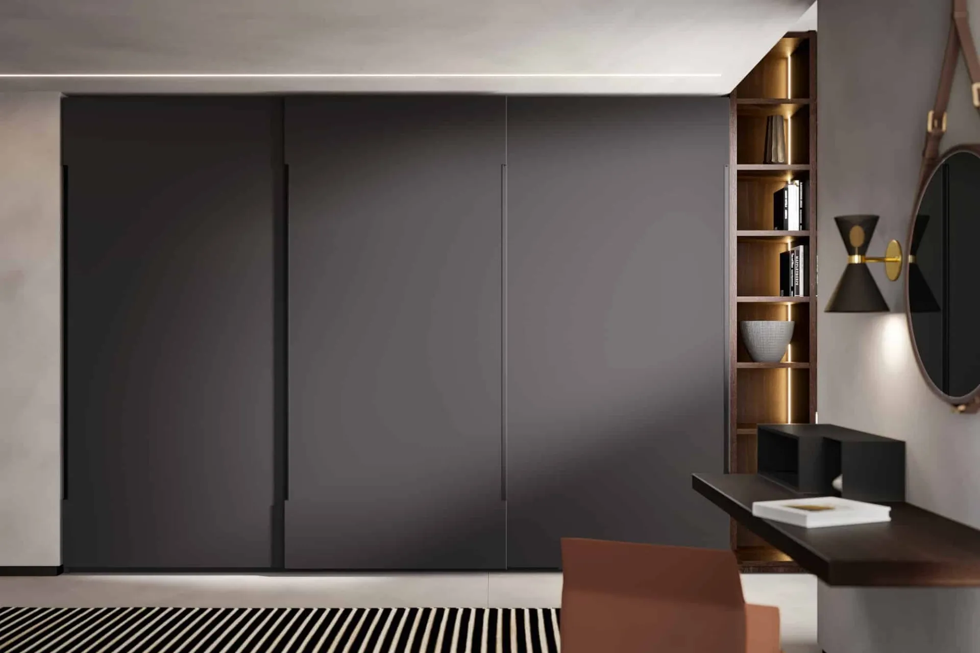 Armadio con ante scorrevoli Liscia laccato Asfalto di Veneran: compila il form per ricevere info di ogni genere e consigli per progettare la camera che hai sempre sognato. Gli Armadi a muro con ante scorrevoli sono elementi irrinunciabili in camera, per renderla ammobiliata al meglio, pratica e completa di tutto. Per progettare al meglio una stanza pratica e sofisticata, prediligi le più originali soluzioni delle migliori marche, letti, armadi e comodini di alto contenuto estetico.