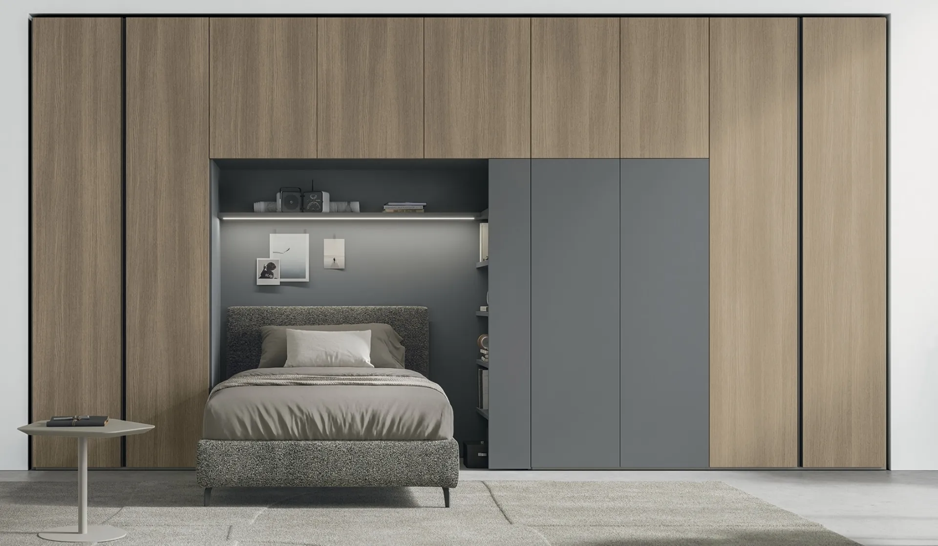 Per allestire perfettamente una stanza bella e di grande qualità, opta per le più originali soluzioni dei migliori produttori, letti, armadi e comò di grande design. Gli Armadi componibili con ante battenti sono componenti immancabili nella zona notte, per renderla ammobiliata al meglio, funzionale e completa di tutto. Contattaci e scopri di più sulla nostra serie di Arredamento Casa: potrai completare la zona notte utilizzando una diversificata varietà di contenitori moderni, come l'armadio in melaminico nella fotografia.