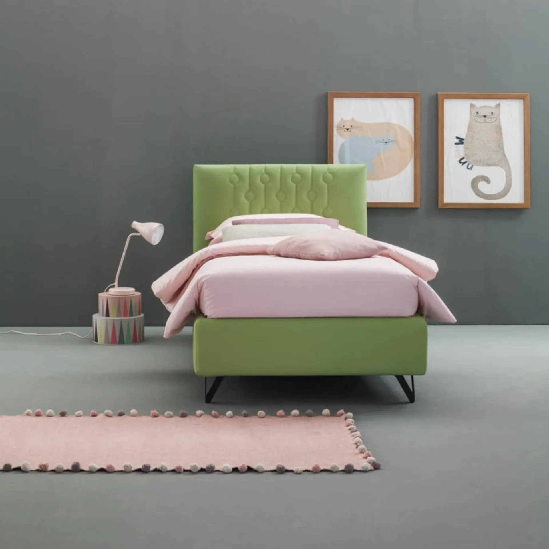 Scopri di più sul modello in tessuto nella fotografia: contattaci per qualsiasi informazione compilando il form in basso. La cameretta dei bimbi include ogni mobile per garantire un ambiente confortevole, in cui sono collocati i letti moderni come questo. Desideri un letto singolo Bside per ultimare la stanza dei più piccoli? Ti presentiamo il Letto moderno Loop di Bside che è appartenente alla nostra linea di letti imbottiti del brand.