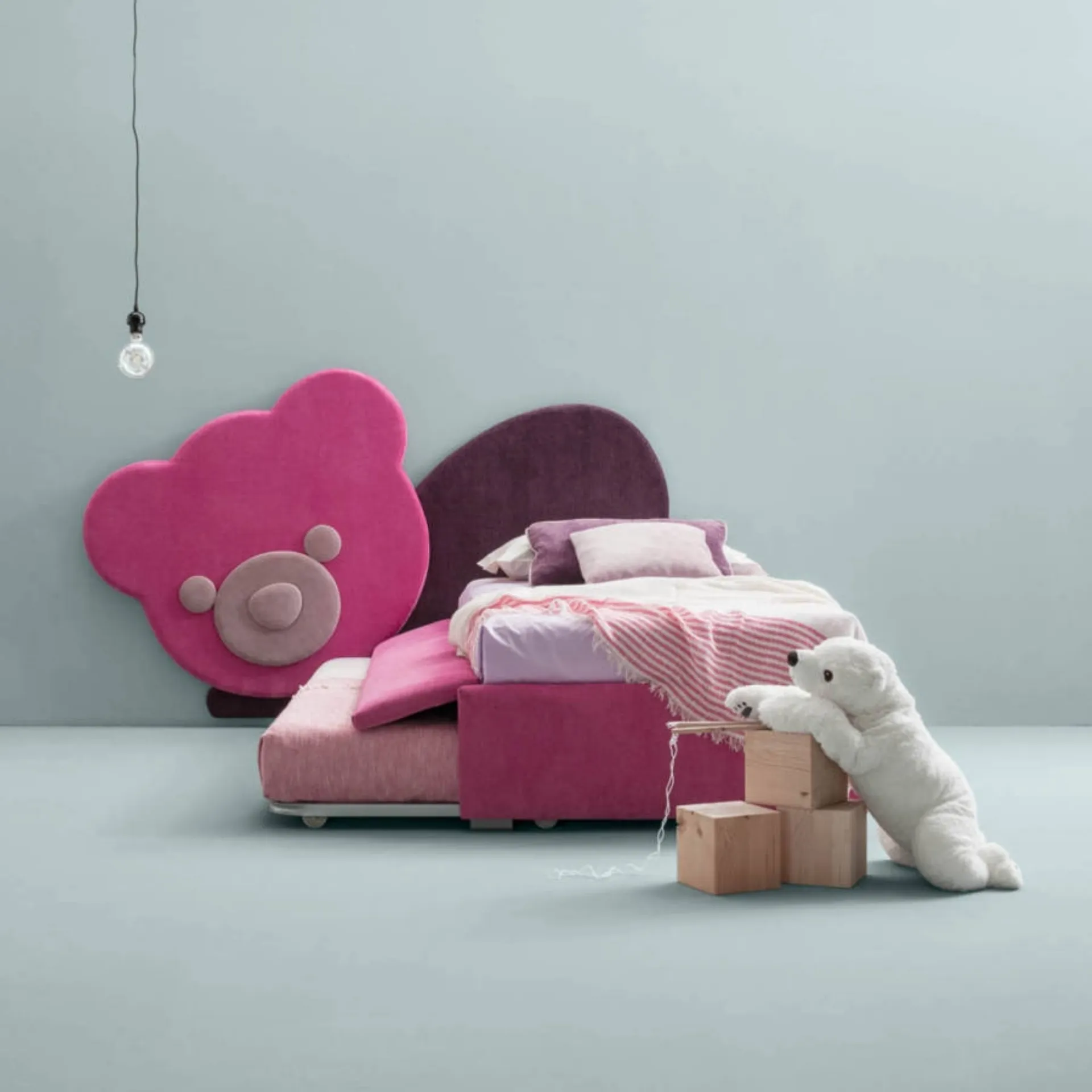Ti serve un letto singolo Bside per completare la camera dei più piccoli? Eccoti il Letto per bambini Ted di Bside che fa parte della nostra serie di letti con letto estraibile del brand. Scopri di più sul modello in tessuto nella fotografia: contattaci per qualsiasi informazione compilando il form qui sotto. La cameretta dei bimbi include tutto il necessario per assicurare un luogo ideale per i bambini, in cui convivono i letti moderni come questo.