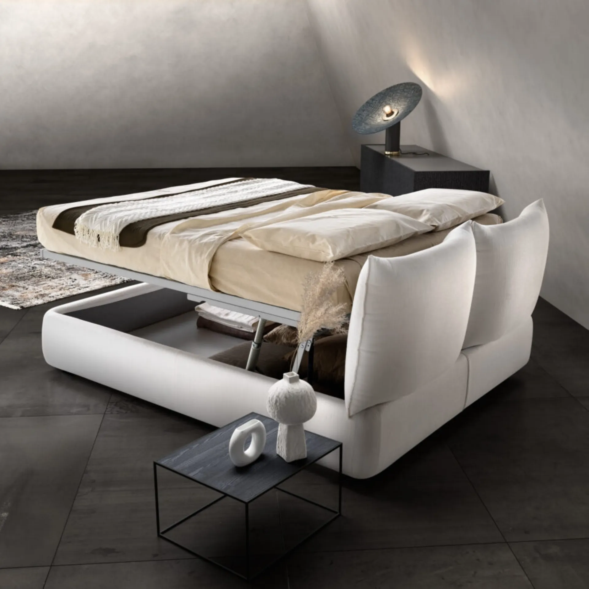 Con il Letto con testiera Zen di Bside del rinomato brand, specialista del settore, potrai completare la tua camera da letto garantendoti comfort, funzionalità e un design pulito. Se desideri creare un'atmosfera intima e rasserenante, il modello mostrato in foto fa al caso tuo: nella stanza del relax dovrai creare un'atmosfera rasserenante, per farti rigenerare le energie ogni notte. Qualità dei materiali e grande comfort sono gli ingredienti che distinguono tutti i prodotti della firma, tra cui anche il letto in tessuto in foto. Scopri nel nostro showroom un ricco catalogo di Letti con contenitore, mobili ed elementi accessori per la camera da letto delle migliori marche.
