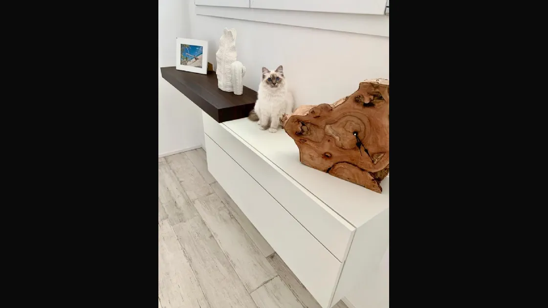 Arredo Living realizzato con mobili in legno laccato opaco bianco e rovere affumicato modello Live