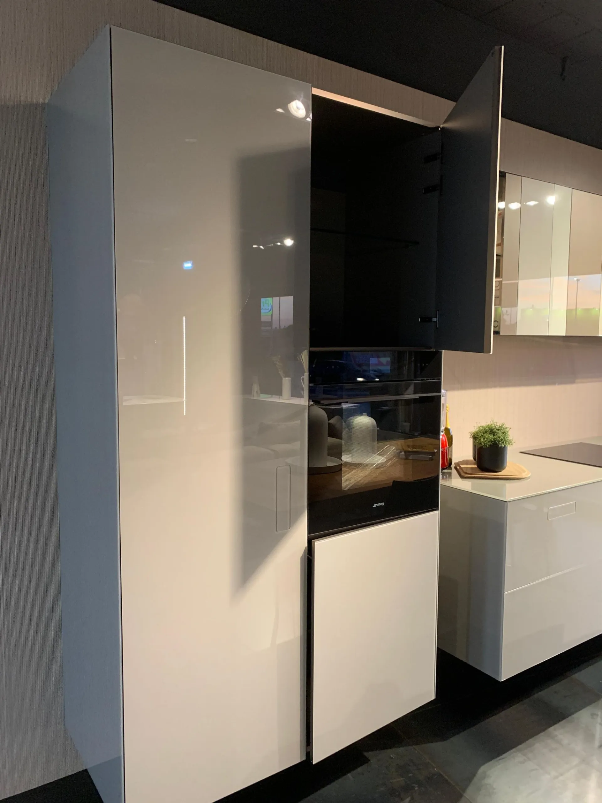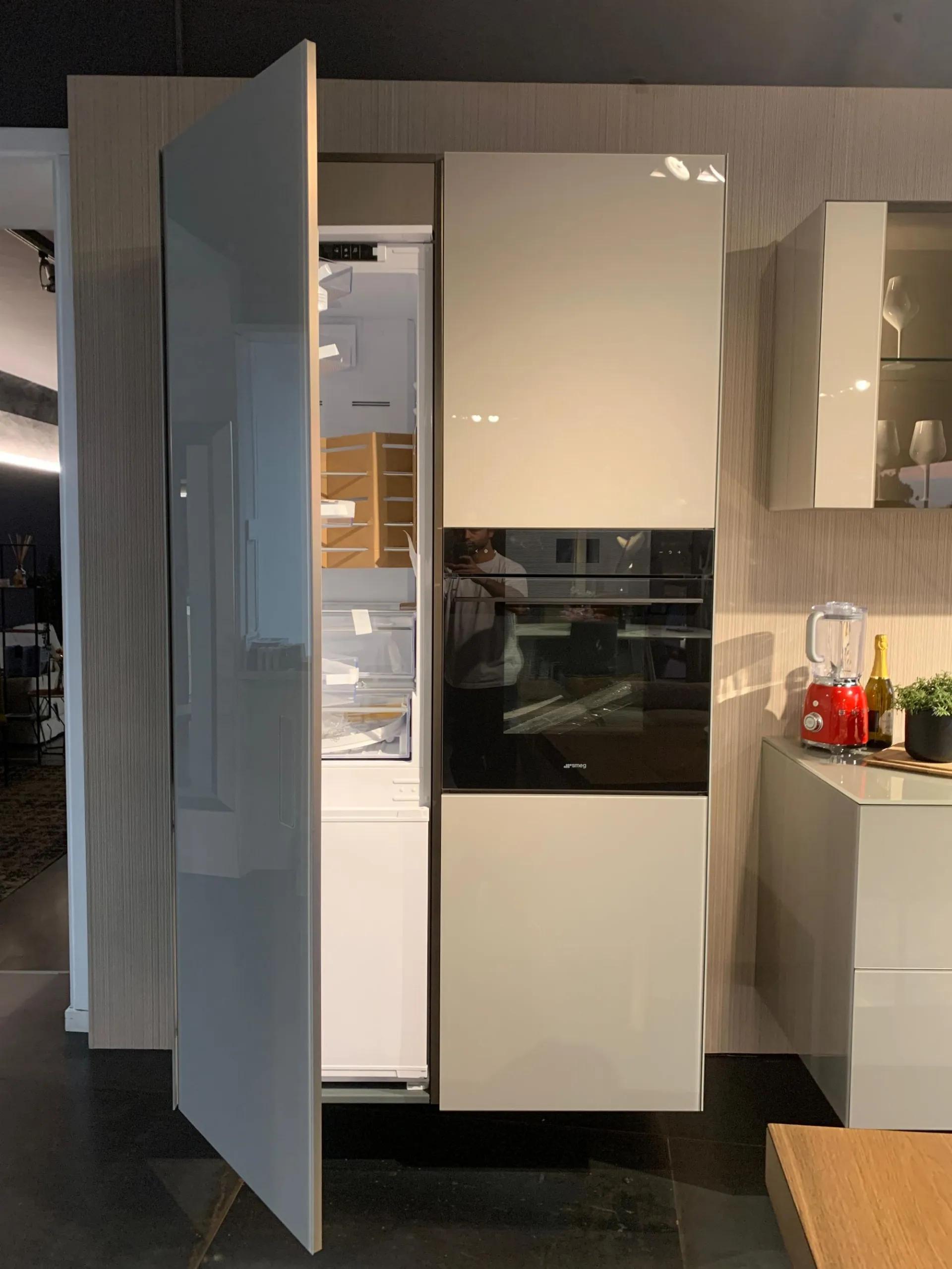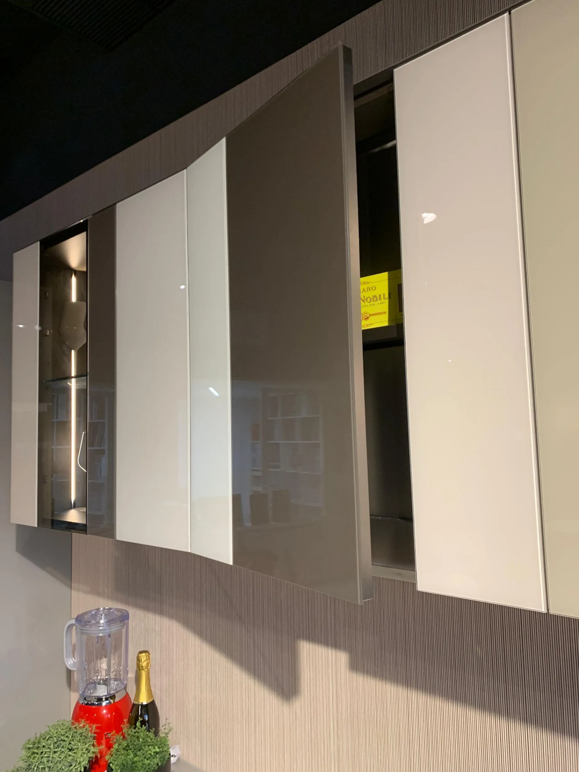 - Colonna 36e8 Sospesa L 60 CM – H 212,6 - P 63 CM per Forno, Vetro Lucido colore Tortora, anta inferiore apertura push pull dx, con 1 ripiano in vetro, anta superiore apertura push pull dx con 1 ripiano in vetro