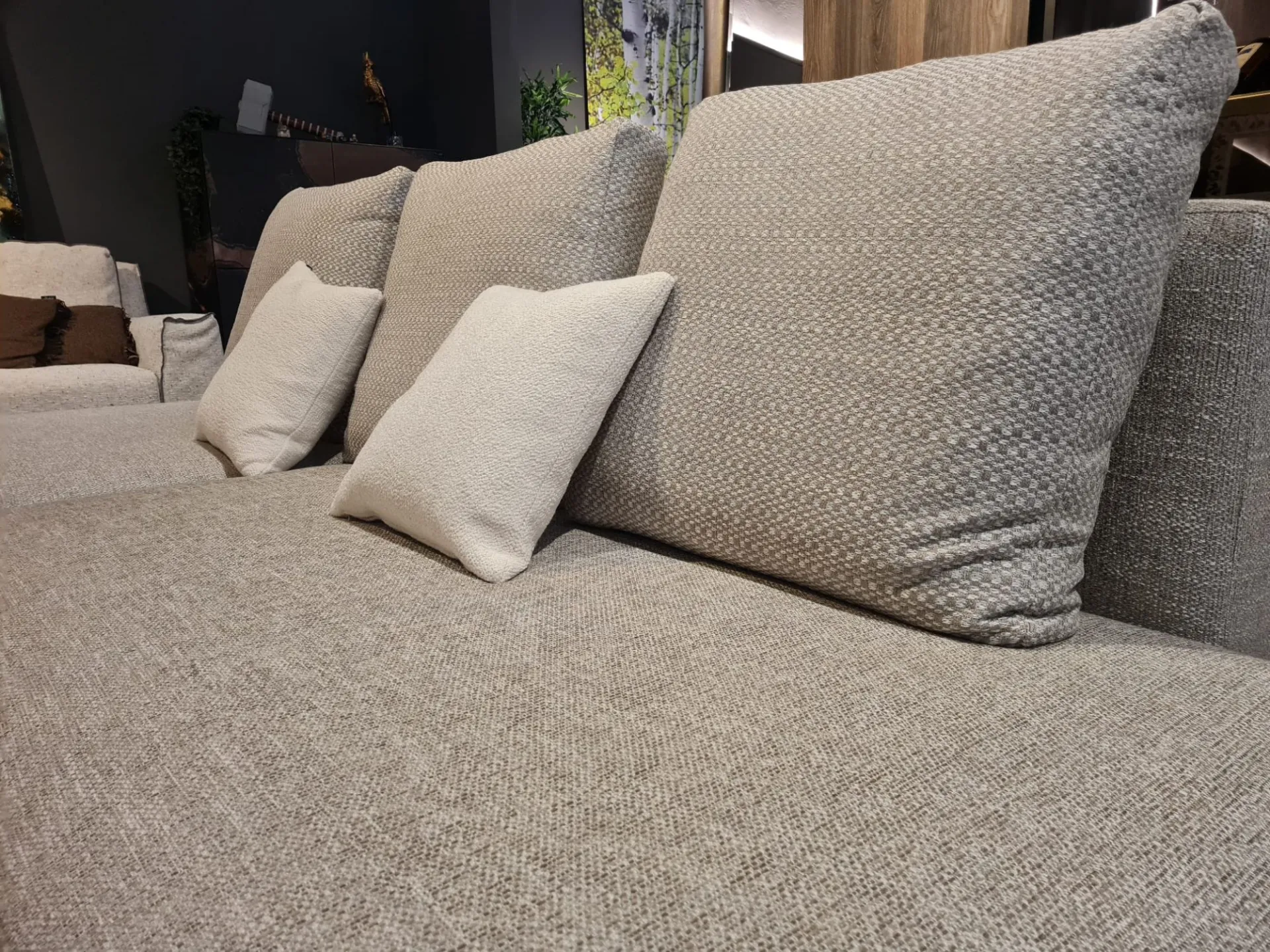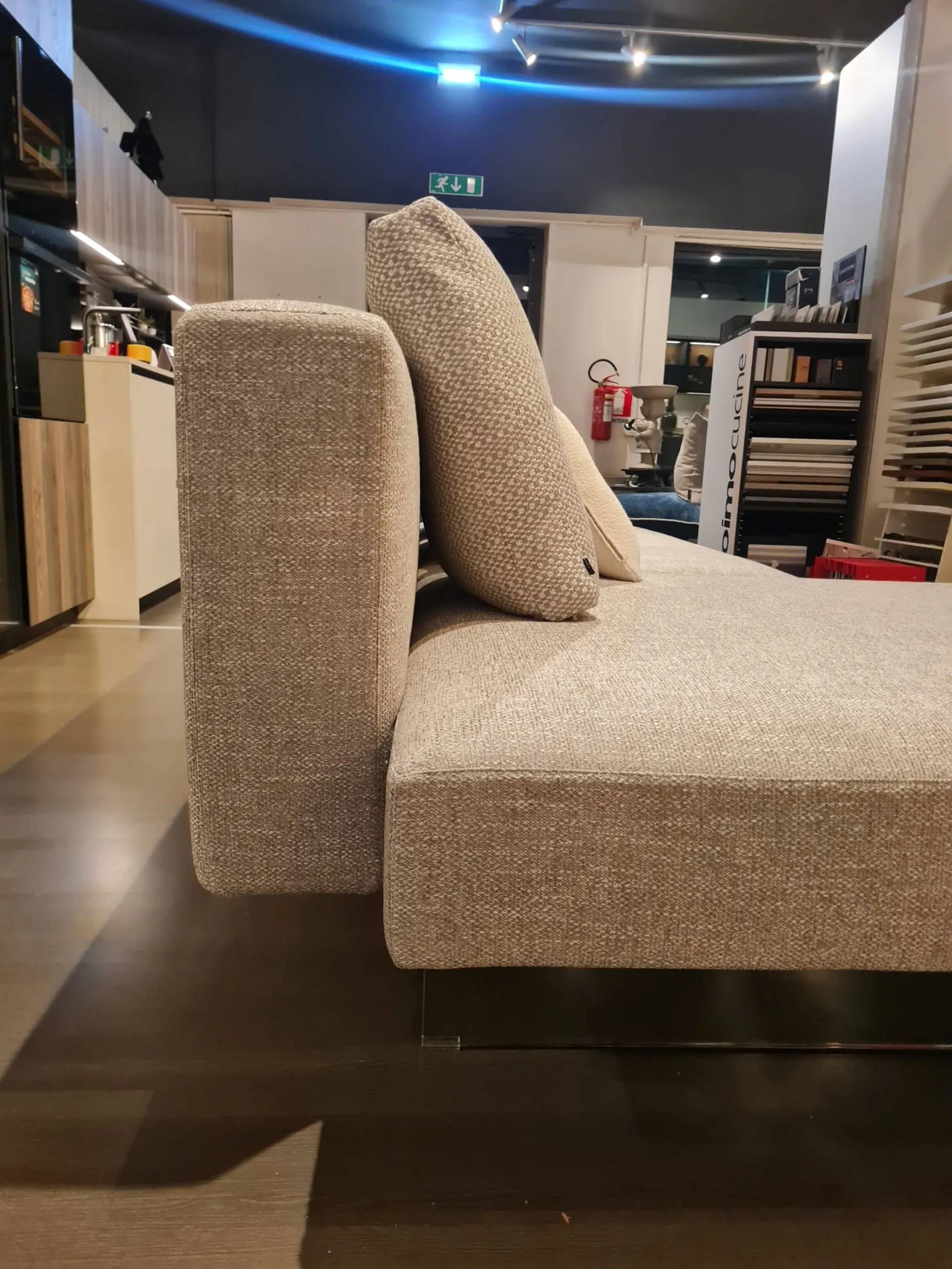 FINITURA: Telaio in alluminio anodizzato verniciato con polveri epossidiche, Piedi in vetro temperato trasparente, Imbottitura in poliuretano a diverse densità con strato di espanso visco elastico per elevata accoglienza, Cuscini in piuma. Composizione Air Formata da 3 moduli + telaio + cuscini volanti: seduta, penisola e schienale in tessuto cat C Francis. Il divano è completamente sfoderabile. La penisola può essere montata a destra o a sinistra a piacimento.