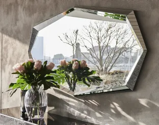 FINITURA: Specchio da parete o da terra tutto in cristallo specchiato. Lo specchio è fornito di staffe per il fissaggio sia orizzontale che verticale. Struttura in acciaio verniciato a polveri epossidiche. Cornice in specchio curvato spessore 5 mm e specchio spessore 5 mm.Adatto solo per uso interno.
