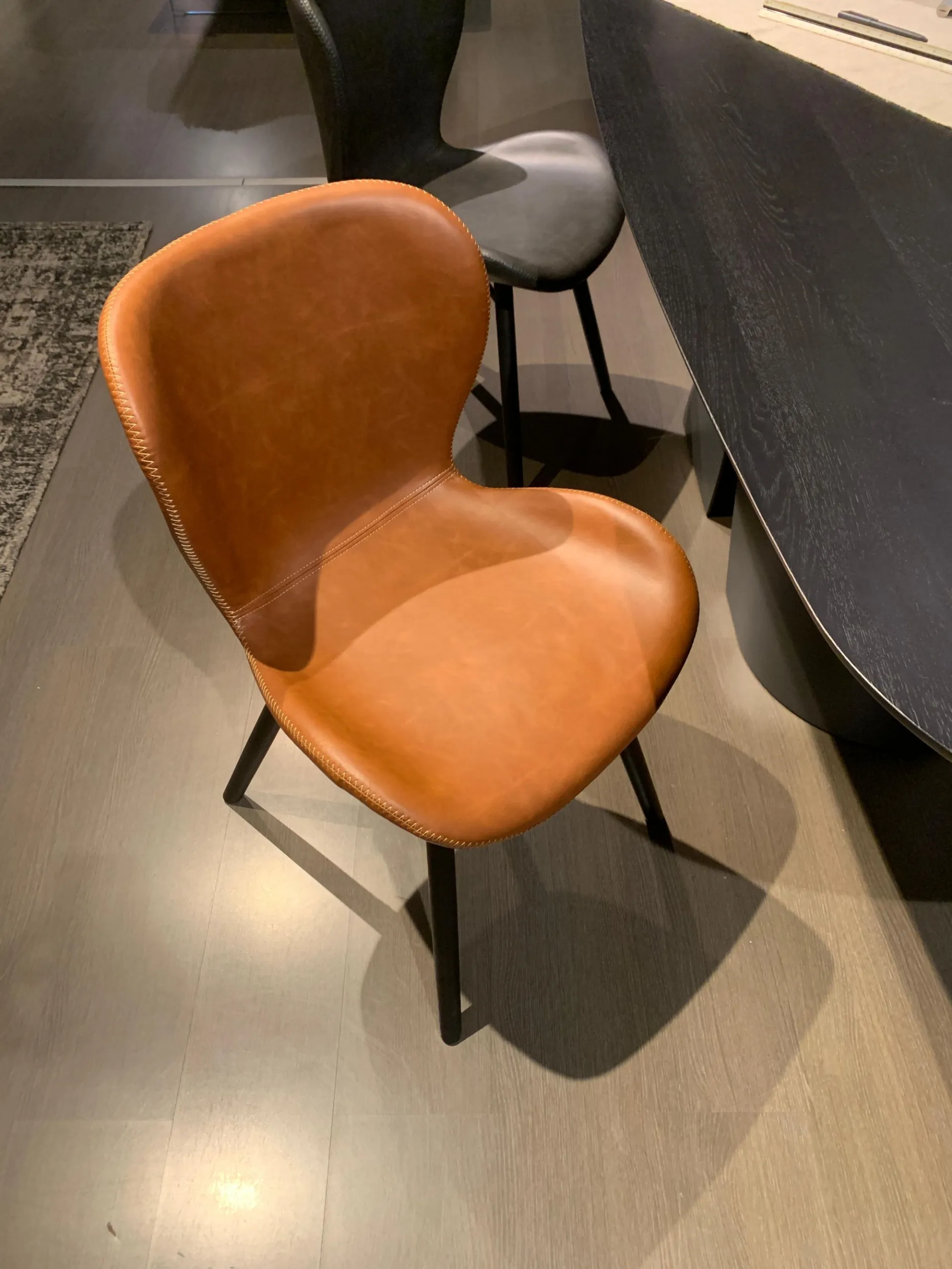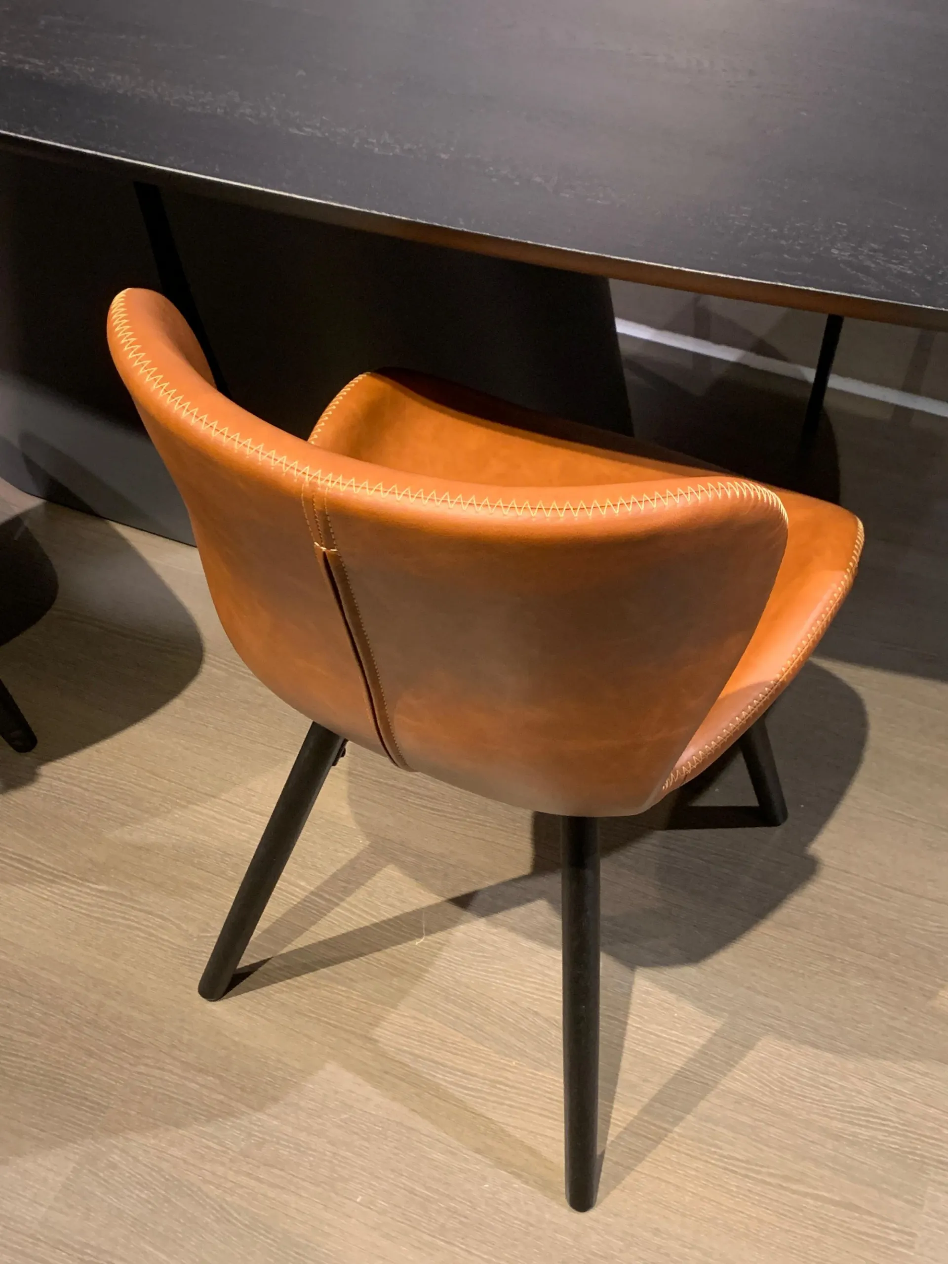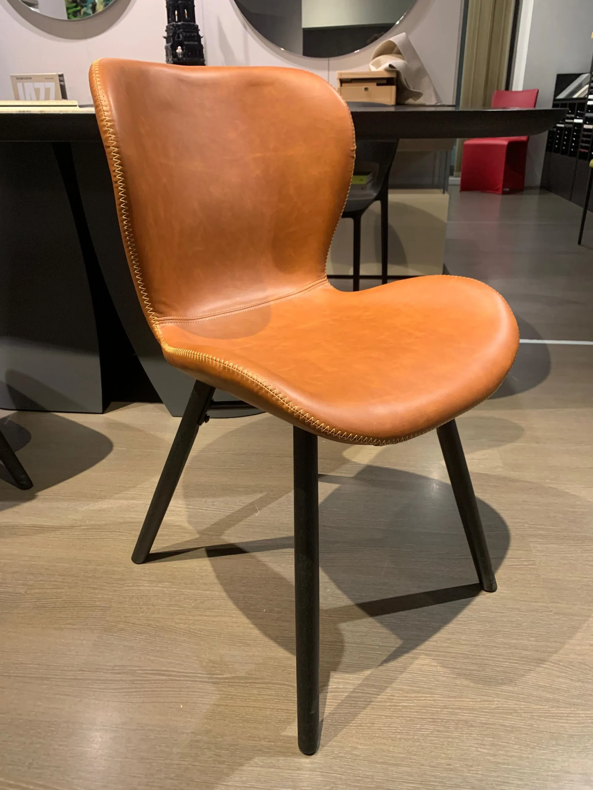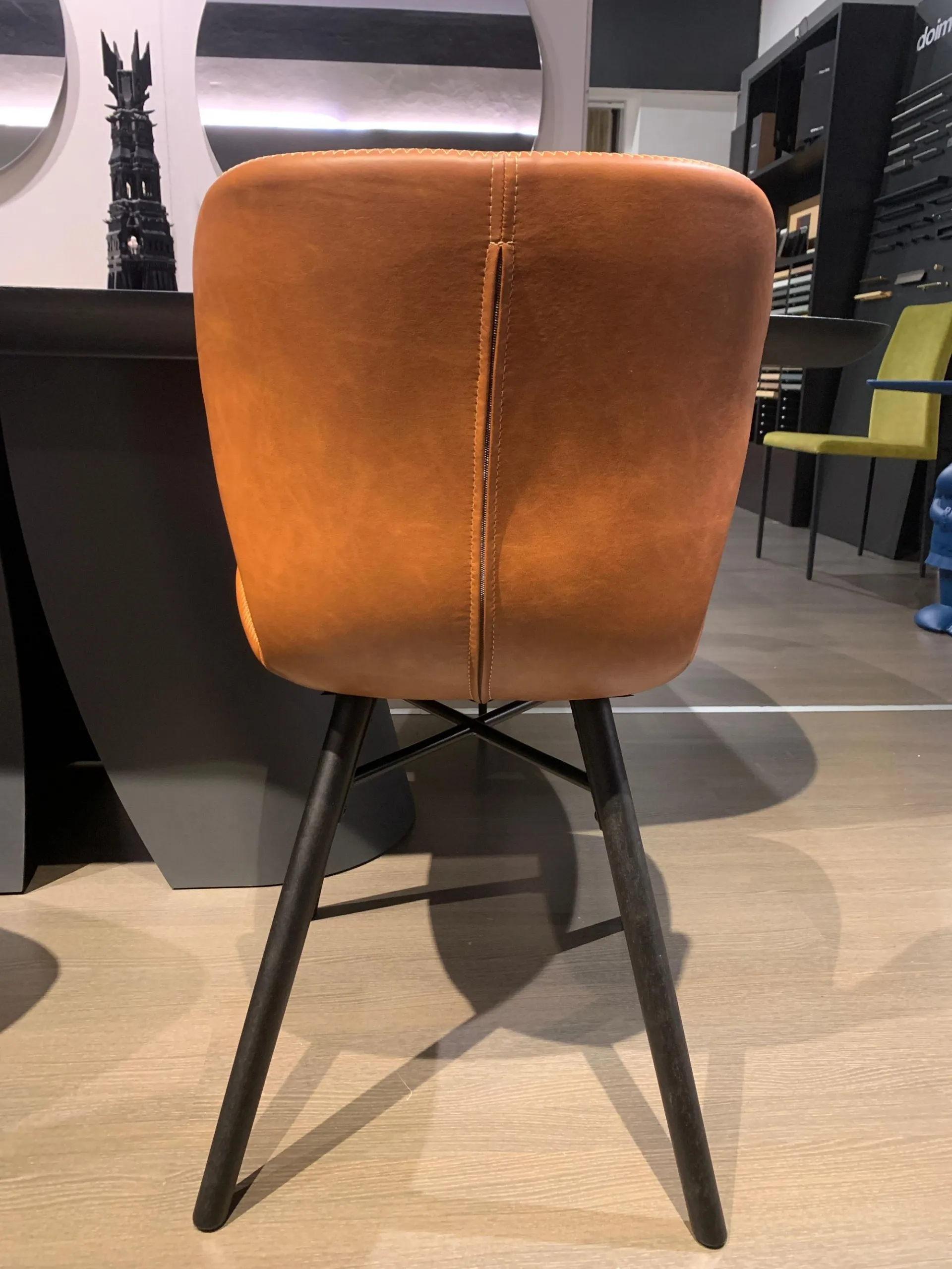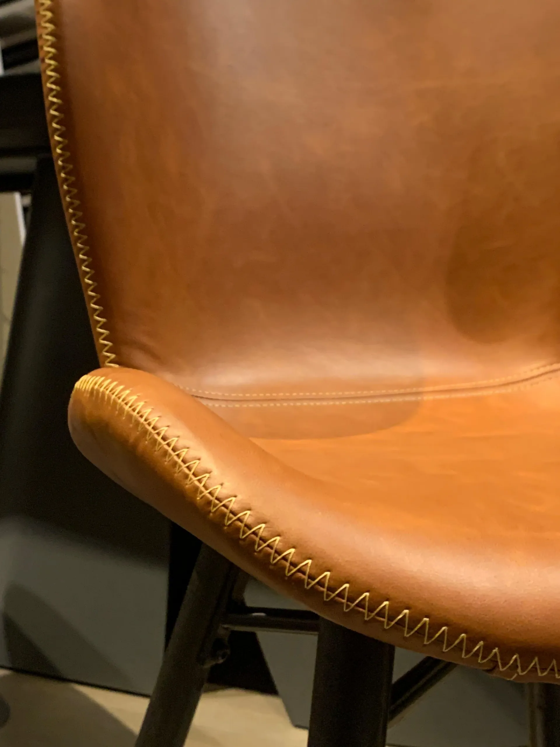 FINITURA: Rivestimento in ecopelle colore COGNAC, gambe in ferro nero