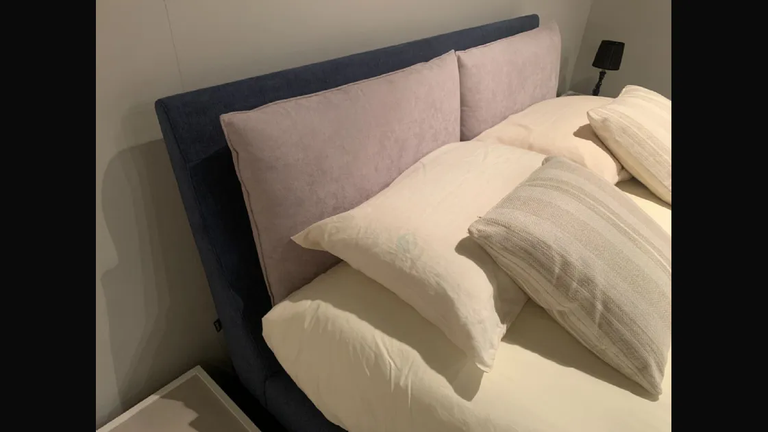 FINITURA: Struttura: testiera in tamburato abete imbottita in espanso + resinato, giroletto in truciolare pioppo imbottito in espanso. Rete Ortopedic a doghe inclusa. Rivestimento: TESSUTO CAT. B Blu nella struttura e Grigio Chiaro nei cuscini