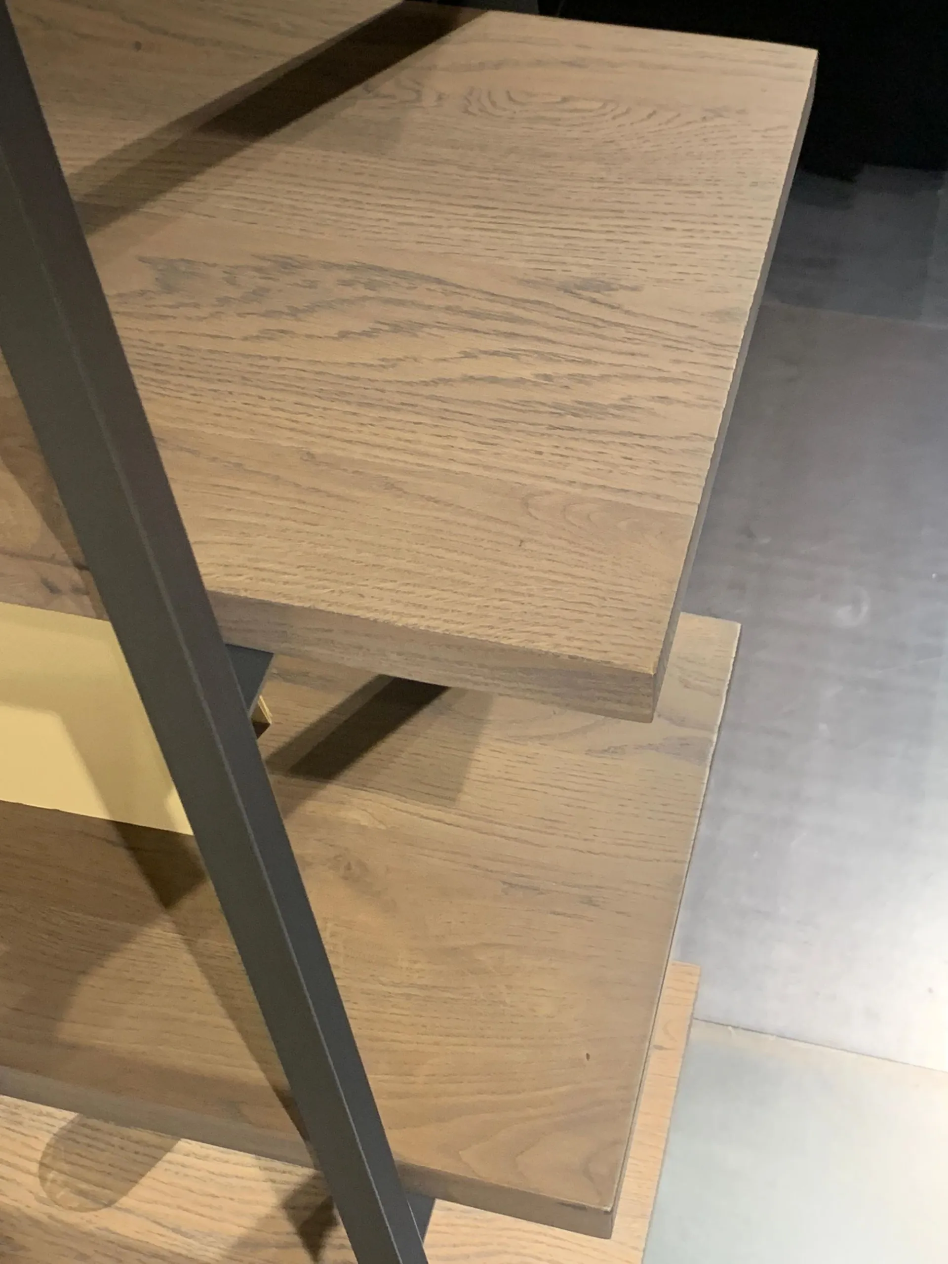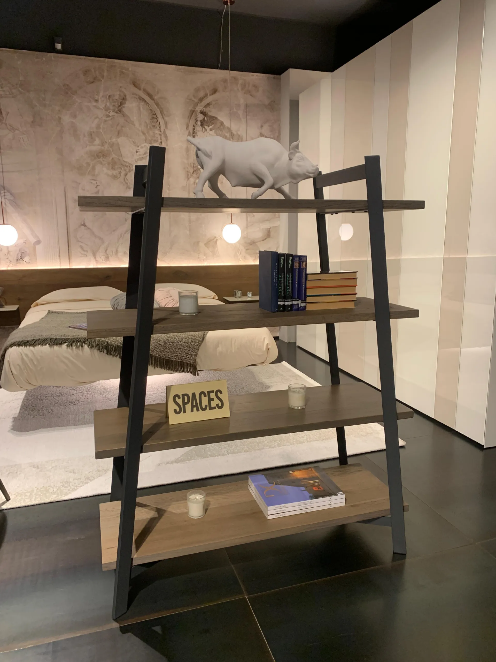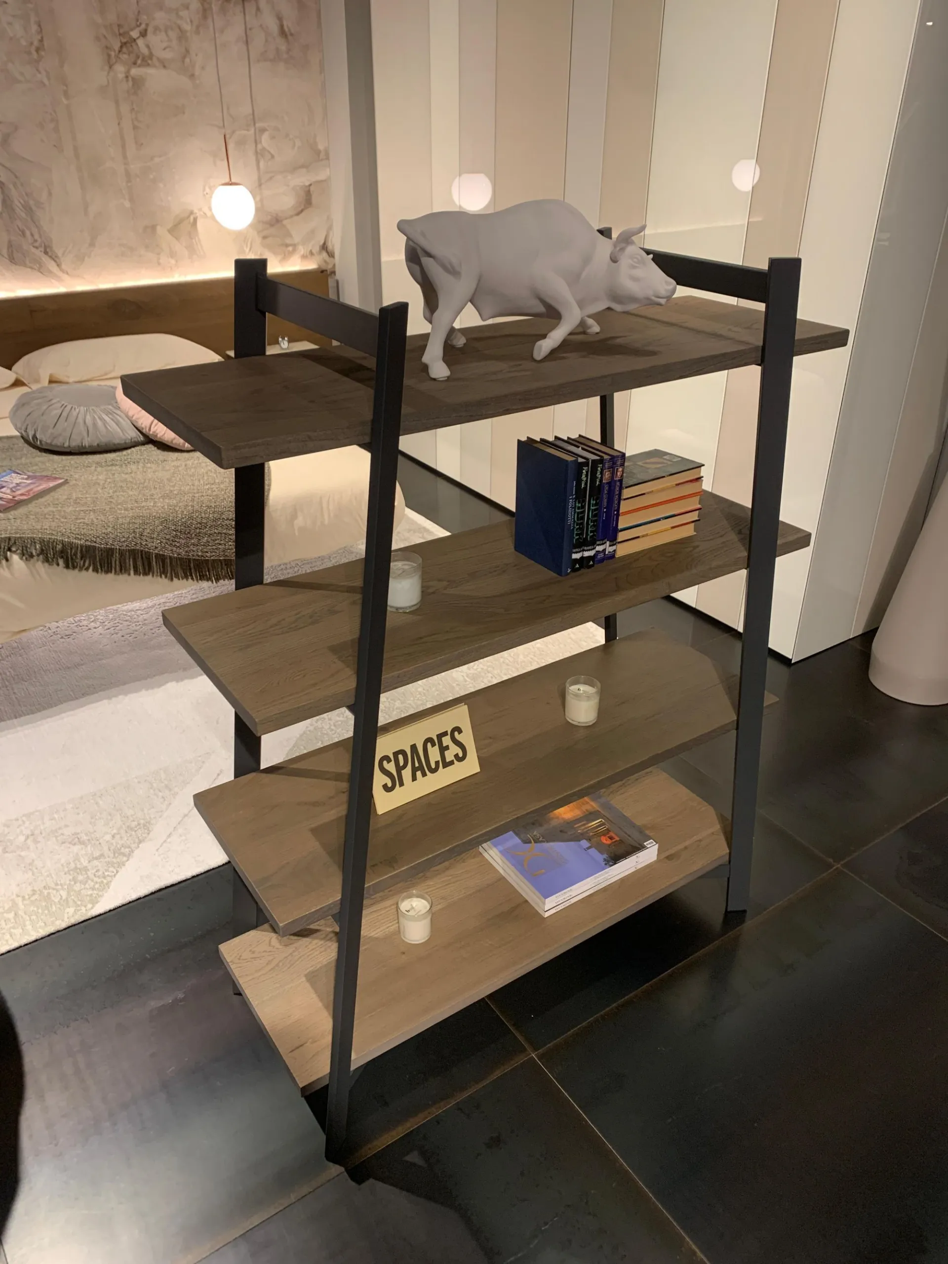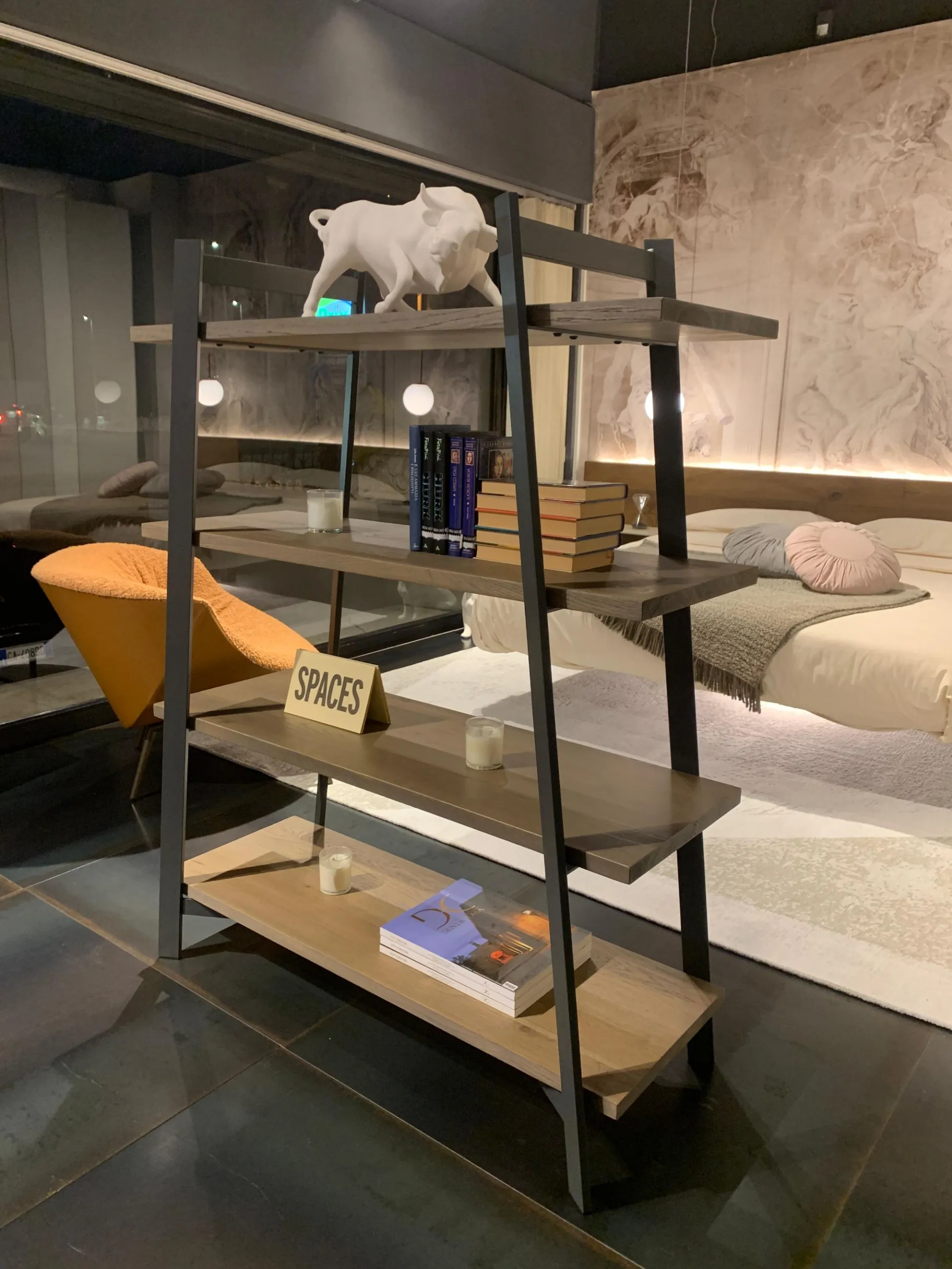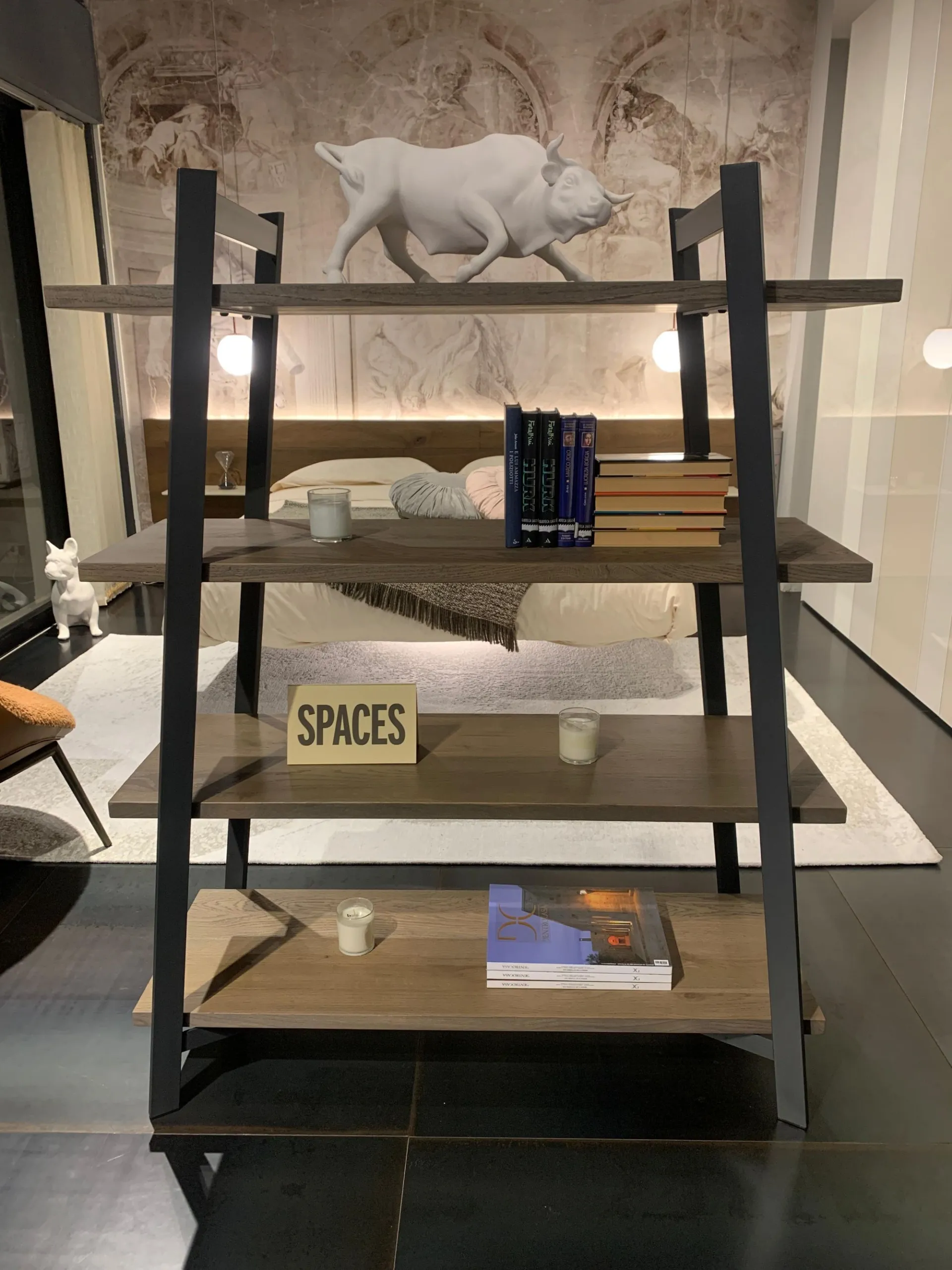 FINITURA: Libreria con struttura in ferro Antracite, ripiani in legno massello finitura Tabacco