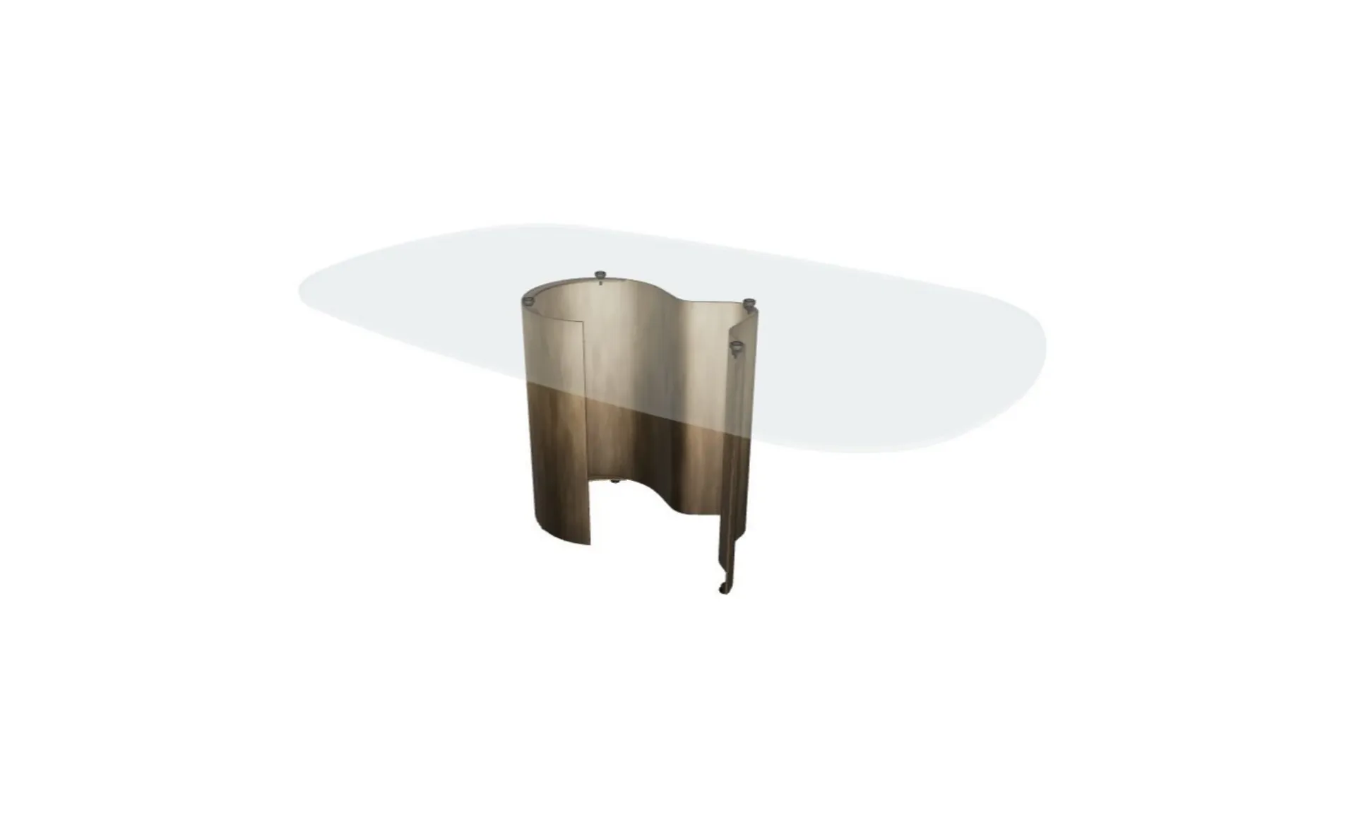 FINITURA: Base in acciaio verniciato Oxybrass. Piano in cristallo trasparente extrachiaro 15mm.