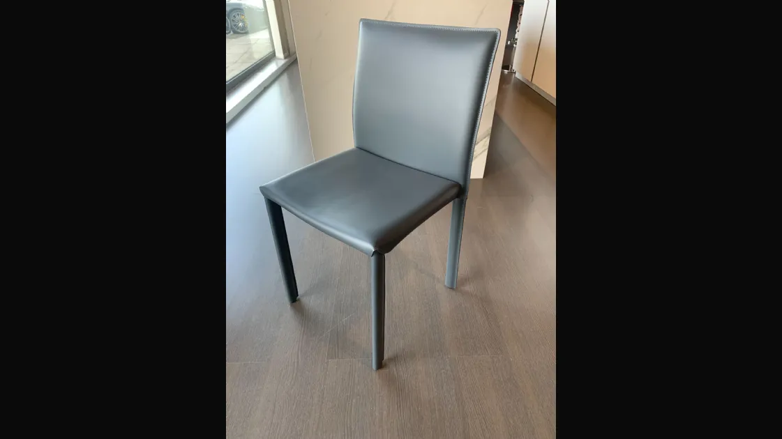 FINITURA: Sedia in telaio metallico verniciato con tubo ovale da 30x15 mm. Seduta in multistrato da 6 mm. Completamente rivestita in cuoio colore Antracite con cucitura a "V" sullo schienale