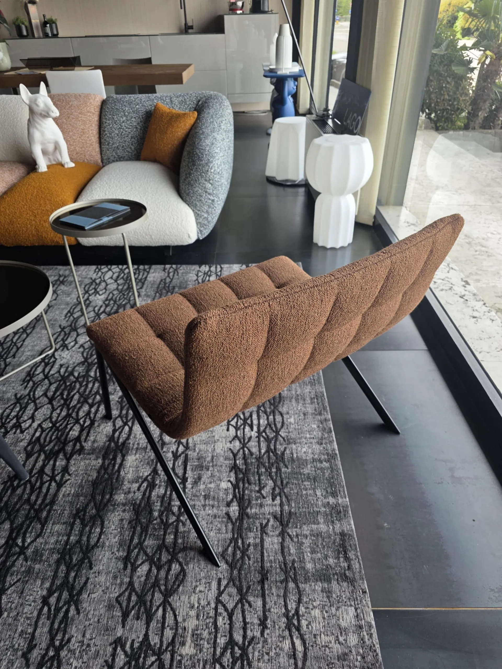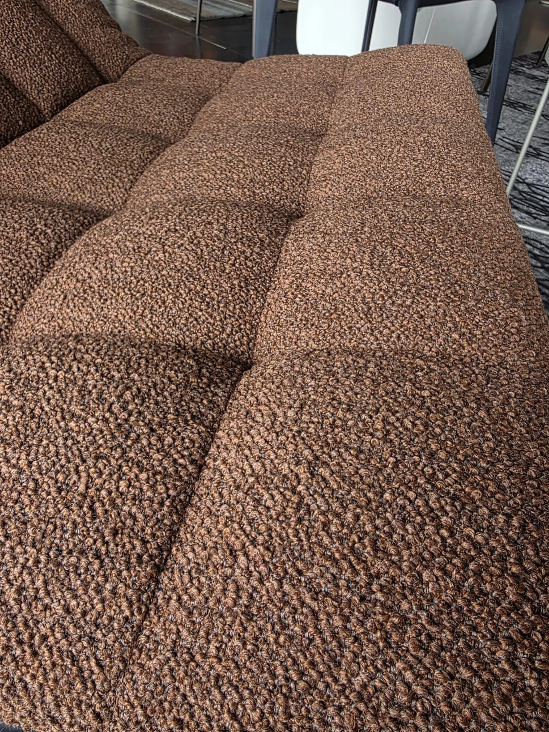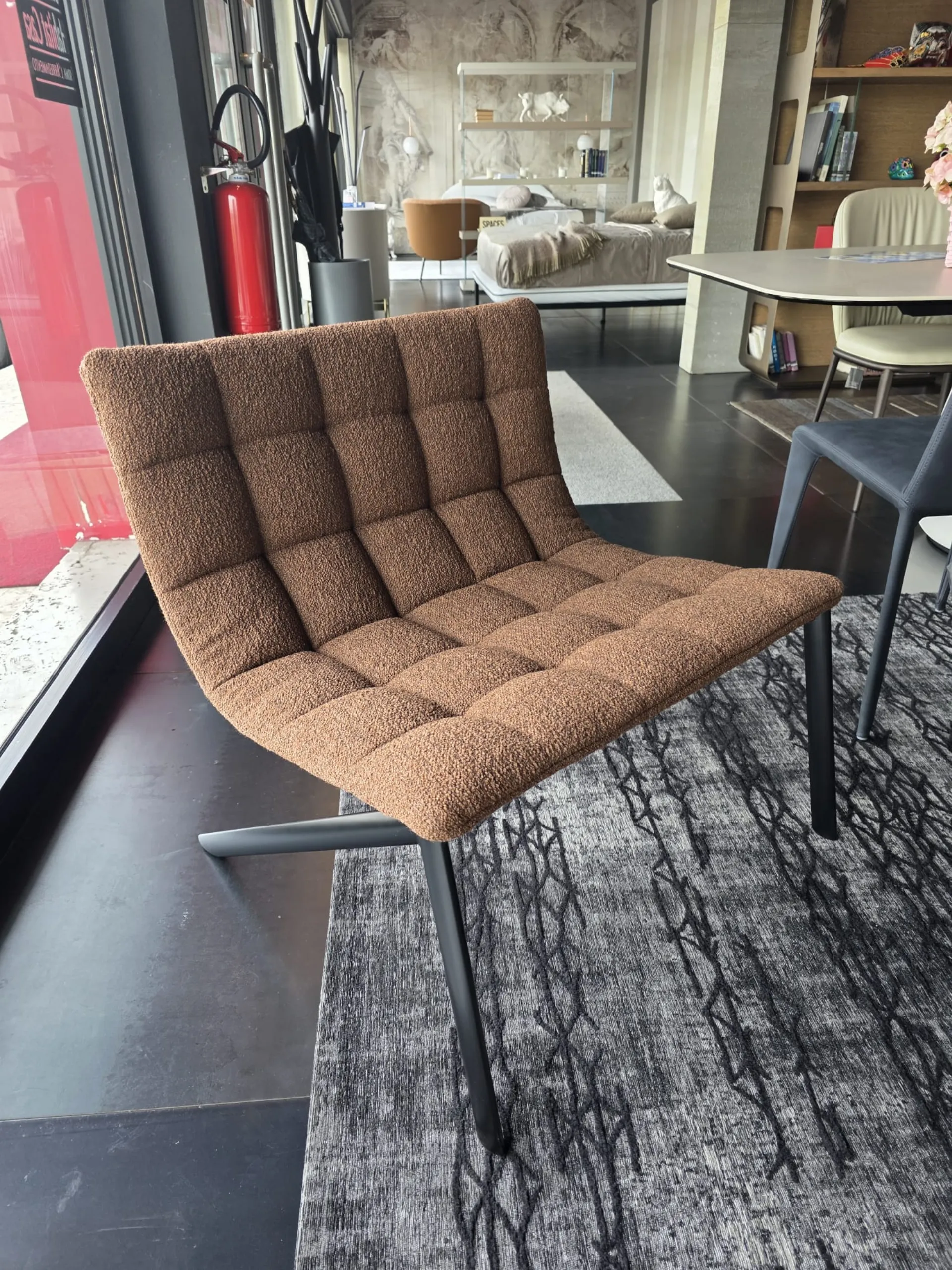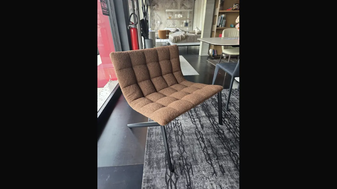 FINITURA: Rivestimento seduta in tessuto Barnum 21, gambe in metallo nero. Non sfoderabile