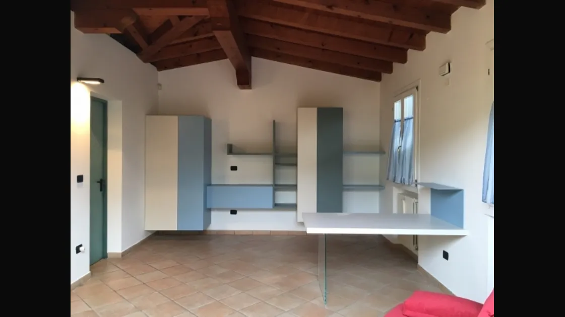 Per i nostri clienti, che richiedevano una stanza con contenitori capienti per il loro ragazzo, abbiamo realizzato questa stanza utilizzando i mobili Lago. Grazie ai contenitori 36e8 e alla libreria Lagolinea abbiamo realizzato una parete adatta a contenere i numerosi libri, giochi e chitarre del ragazzo. Abbiamo posizionato poi una scrivania, con supporto in vetro Air.