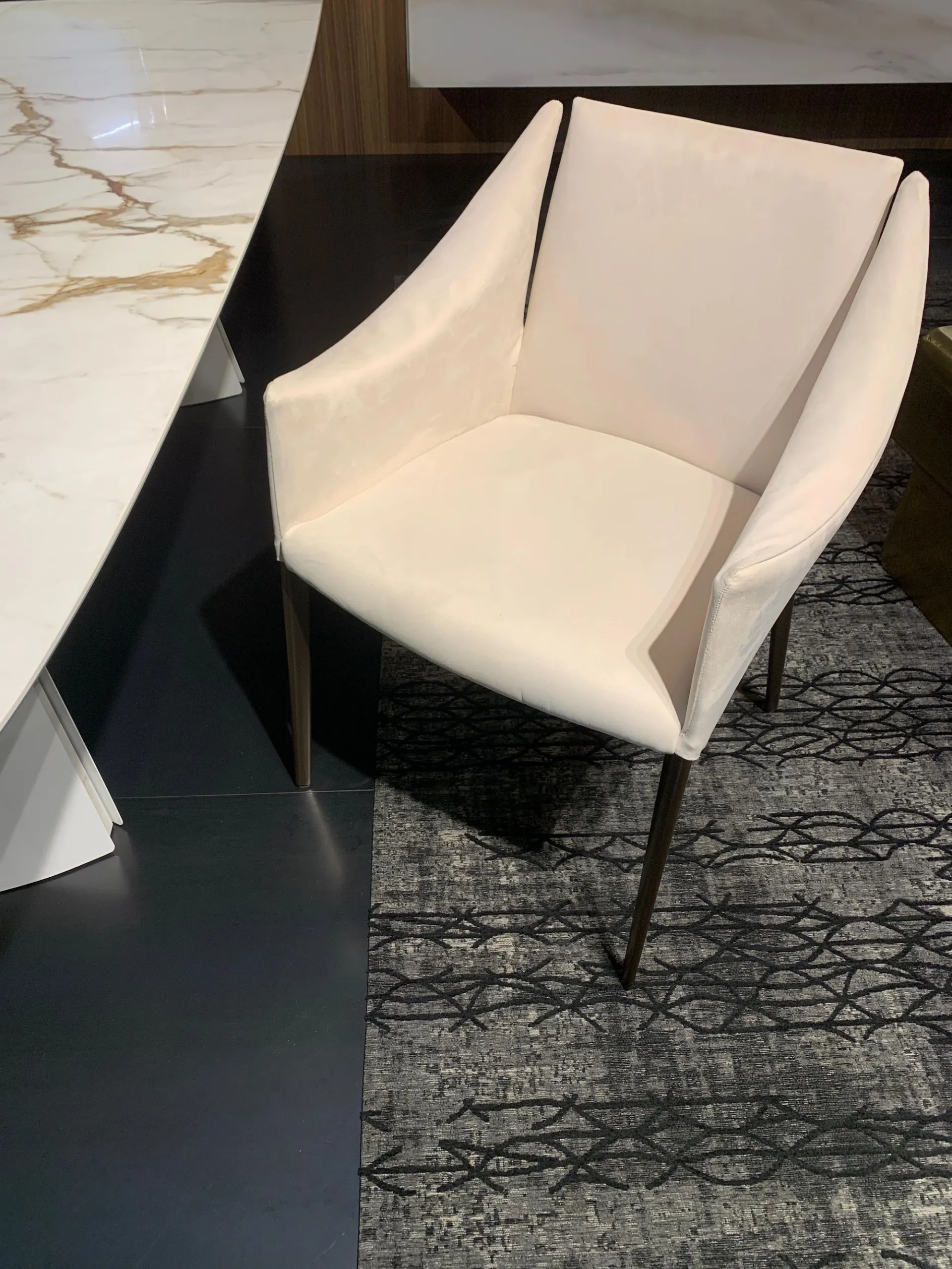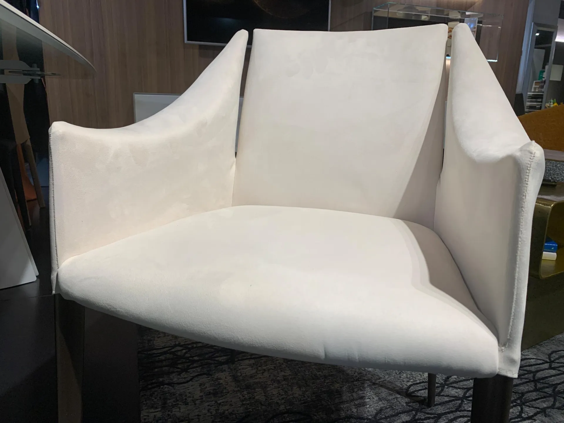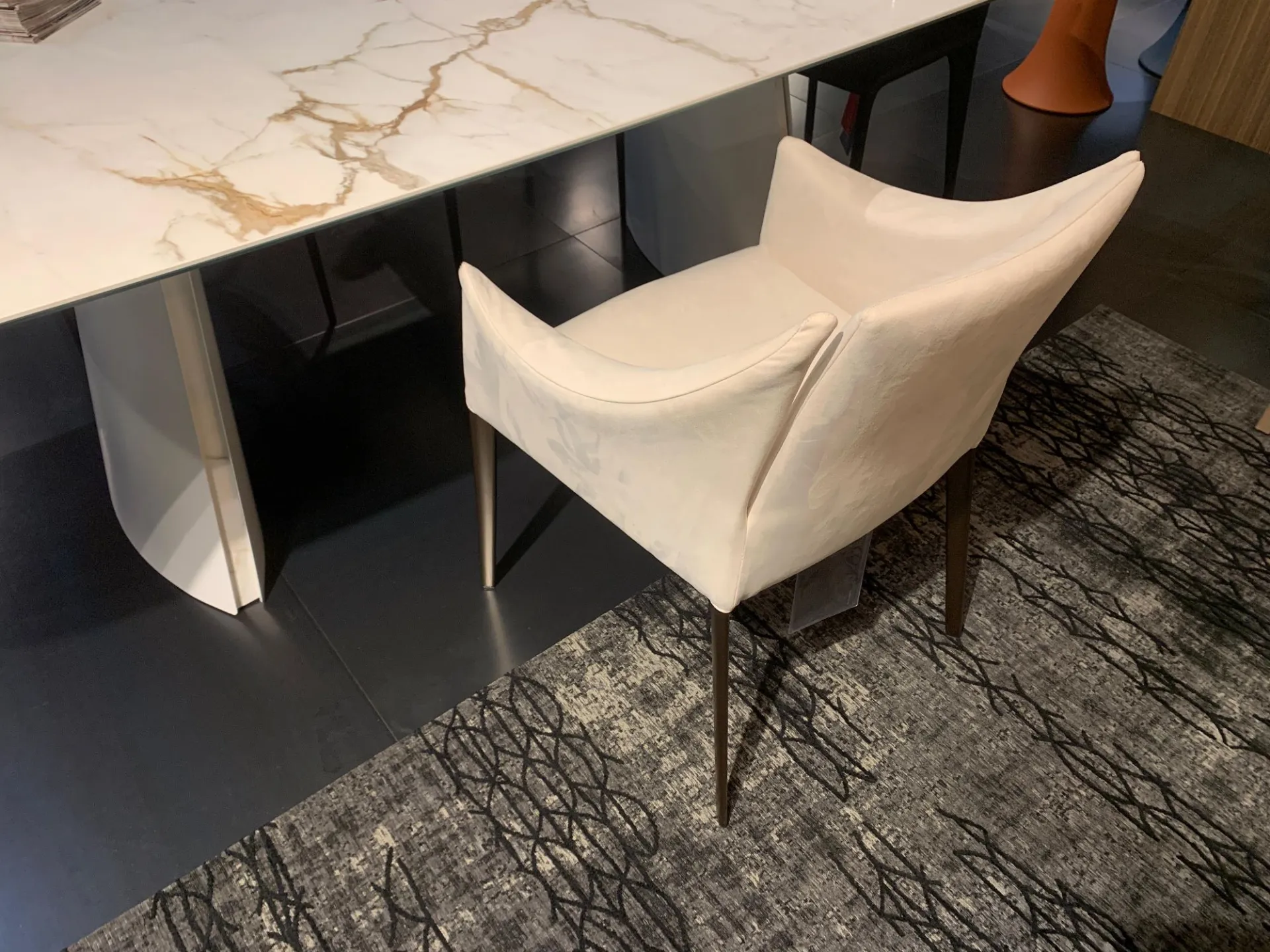 FINITURA: Struttura in acciaio. Imbottitura in gomma indeformabile. Gambe in metallo plus colore BRONZO. Rivestimento non sfoderabile in tessuto Ecopelle soft 220