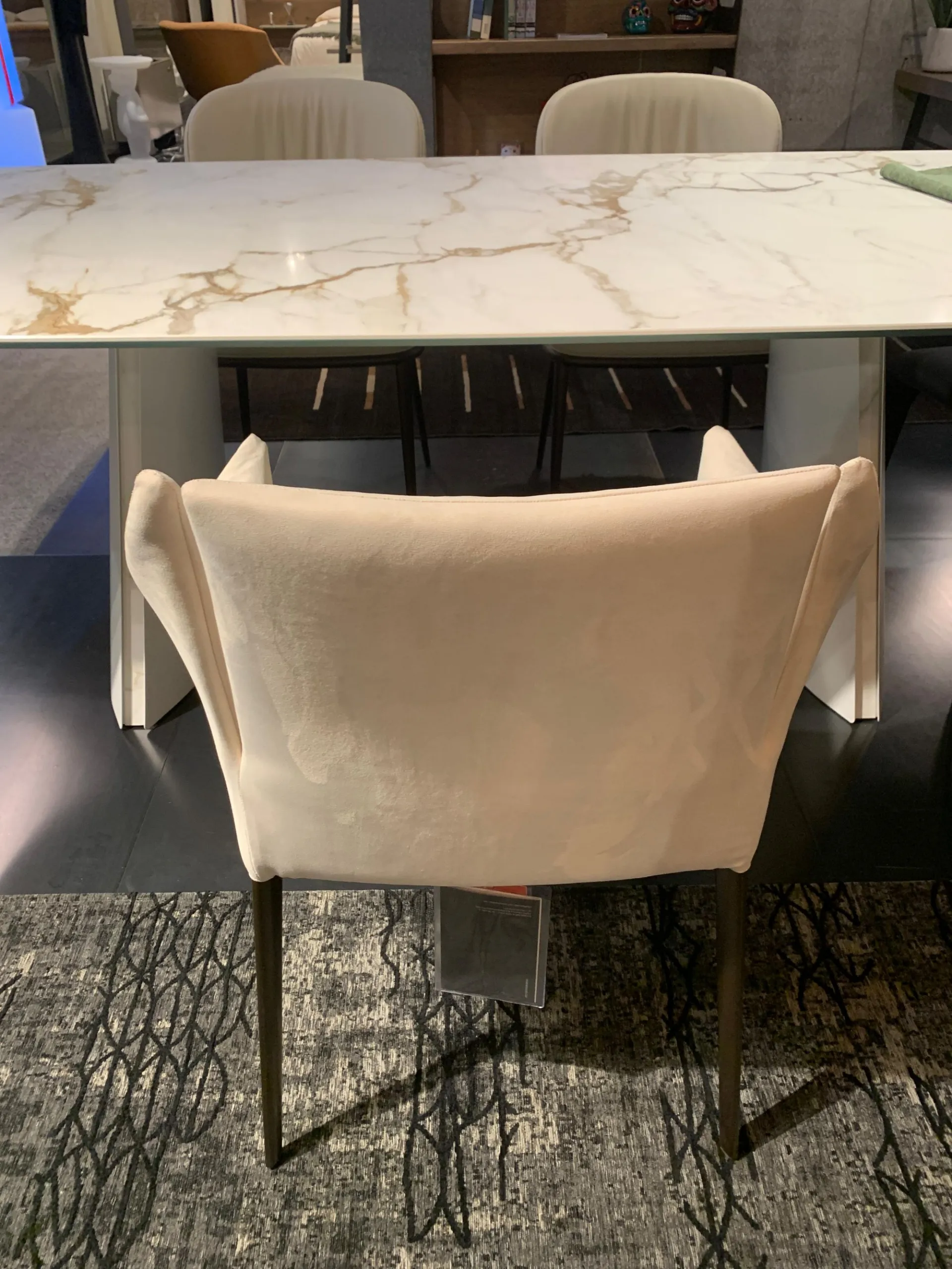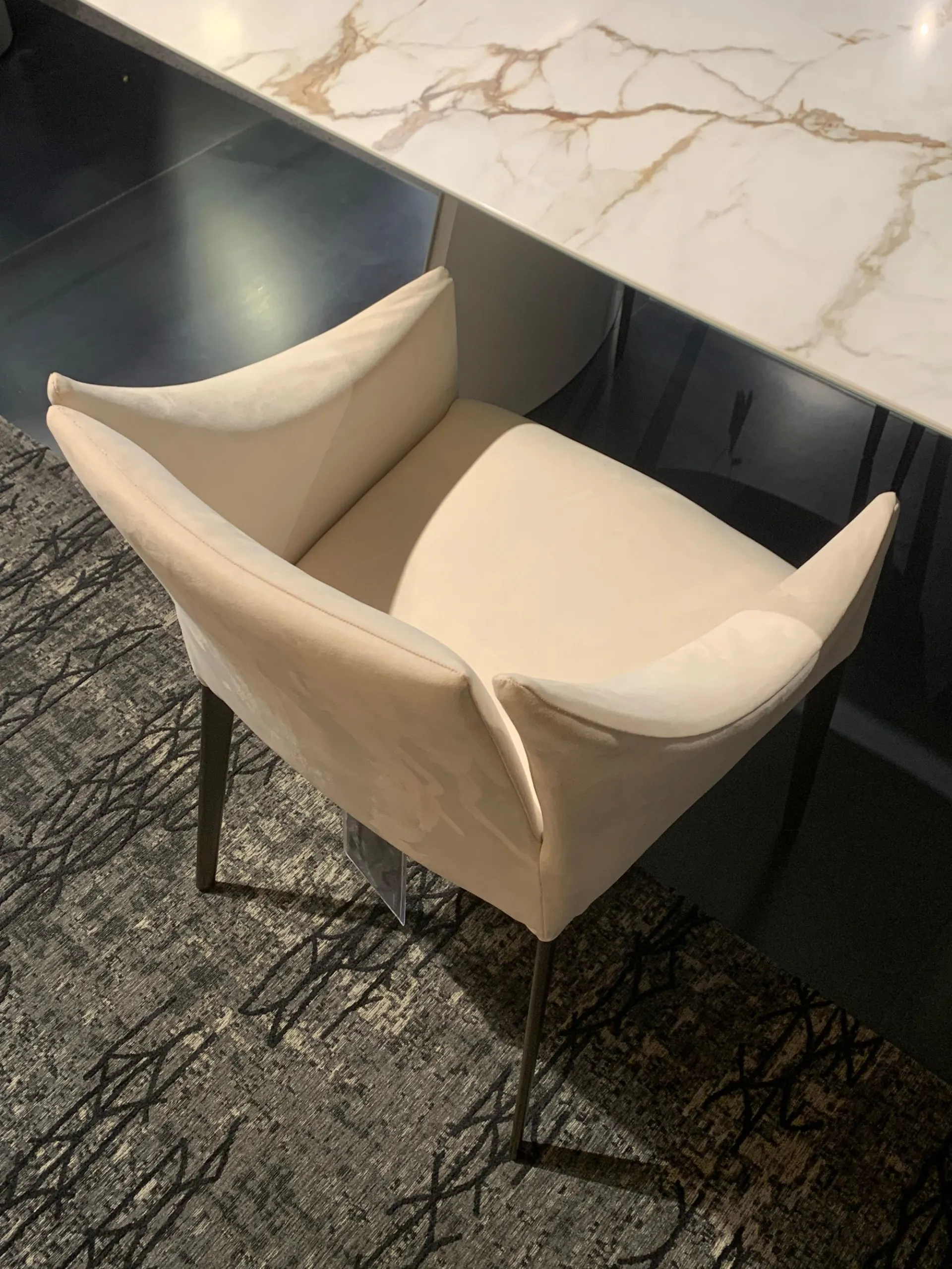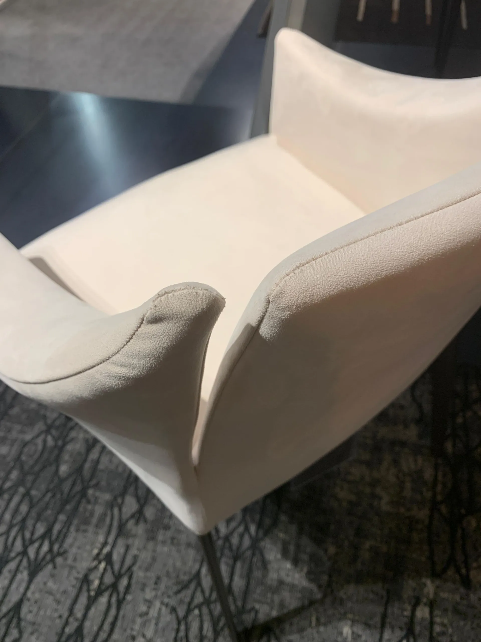 FINITURA: Struttura in acciaio. Imbottitura in gomma indeformabile. Gambe in metallo plus colore BRONZO. Rivestimento non sfoderabile in tessuto Ecopelle soft 220
